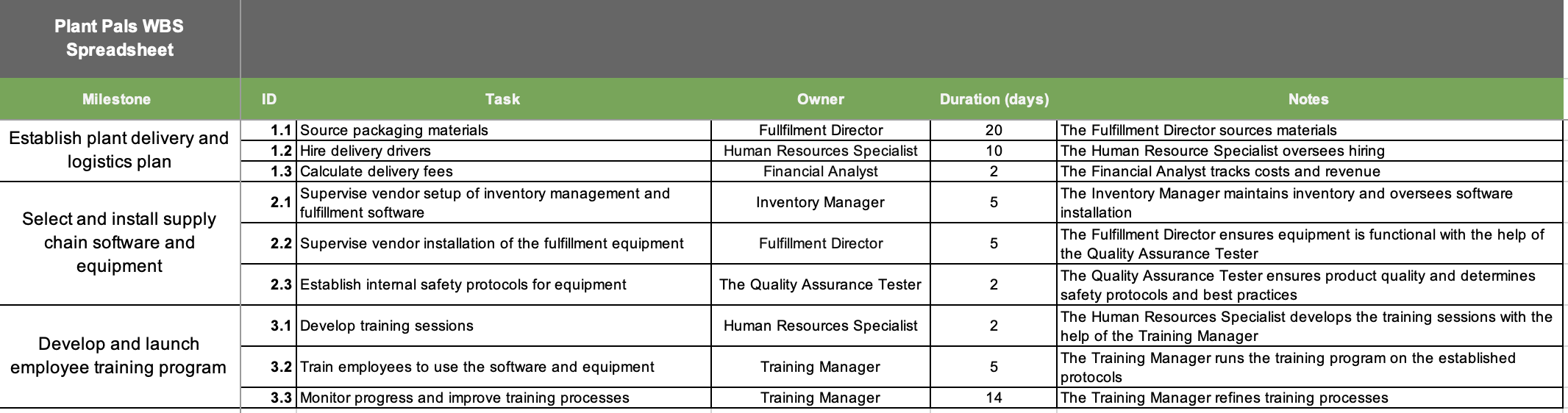 Work Breakdown Structure WBS